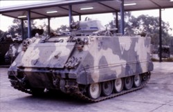 I have included  some photos of the first batch of cam painted vehicles we did mid 1981, prior  to exercise Kangaroo 81.  The 3rd Task Force (as it was known then)  Commander, Neville Smedhurst, directed 102 Field Workshops to paint everything  cam (including weapons).   The selected colours for vehicles overlaid on  the base olive drab were: