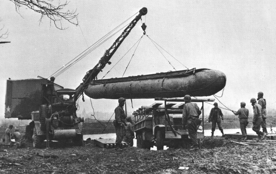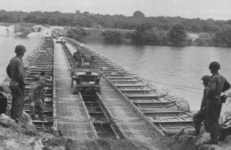 The picture on the left is worth a thousand words. General George Patton's US Third Army crosses the Rhine River into the 'Fatherland', Oppenheim, March 24th 1945. It is a pontoon bridge. The individual pontoons arrived by truck -a large convoy of trucks- and by the time Patton uses the bridge, the trucks have returned to "port" and picked up another load of supplies. The numerous US trucks (the total number varying between 5000 to 6000) ran 24 hours a day for weeks, up to the front lines and back again; yet still supplies ran low. The after the initial D-Day invasion ('Neptune'), such machinery as transportable bridges, replacement freight loco's, the 'Pluto' submarine fuel pipeline, the prefabricated 'Mulberry' Harbour (complete with cranes), as well as decoy intelligence- all were to play a part in the biggest invasion in history... and all the new machinery was simply to ensure the best possible supply line to the troops at the front. The tanks and trucks and jeeps, in scenes such as the Rhine crossing, all ran on 'imported' petrol. And the soldiers needed "imported" bullets, medicine, food and reinforcements. The men and tanks and jeeps on this western front are dependant on a supply line stretching back to the D-Day beaches invaded on June 6th 1944, only nine months before. The supplies moved on trucks known originally as the "Red Ball Express". (See Legends page). In other theatres of World War 2, the need for trucks was just as critical and each truck told a different war story. (See Typical story page). The variety of makes, models and configuration of the trucks used in the Allied effort were remarkable. (See Makes & Models page). Many thousands of trucks saw service in campaigns around the world as they were part of the Lend-Lease program of the Allies. (See Lend Lease page). These World War 2 trucks are now getting