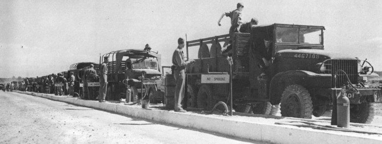 On chosen itineries exclusively reserved for military transport, the Engineer Corps reconstructed civil engineering works including bridges, installed vehicle servicing areas, fuel supply points, and rest centers for drivers.