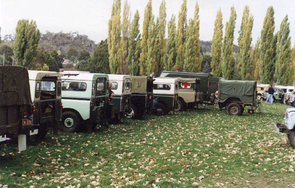 The 50th Anniversary Land-Rover Gathering was held in Cooma (April 10-11-12 1998) to celebrate the 50th Anniversary of the first Land-Rover shown (April 1948). For us it was a relatively small weekend trip, but for many people travelling from Western Australia, Northern Territory and Queensland it was a long journey. One fellow camper from W.A. had a fuel budget of $1200... and this expense pales when compared to the visitors from England and New Zealand. As an extreme example, we met Leon Zwetsloot, a Kiwi, who had attended the 50th Event in New Zealand, was enjoying the Australian 50th Event before getting back onboard Trans-Landy Airways to attend the British 50th Event... All things considered Kodak and Oil company shares should've risen appreciably! We arrived home with many many memories... the parade, the people, 600+ LRO at the Gala Dinner, 530 Landys (of all varieties and ages) at the refridgerated photo-in-a-paddock event, and heaps of conversations/meetings. We spent time spreading the word about The Registry of Ex-Military Land-Rovers and photographing ex-military Series 2A, 3, 110's, 101's and the Lightweight. An Army LRPV 6x6 and 6x6 "Bus" was also part of the display. The Land-Rover Road Show was in full flight too. It's not to be missed when it comes to your area. Congratulations to the 50th organisers and special guests and also the Cooma Hot Bake Shop! The Showground conference facility was terrific, capable of seating 600+ LRO to dinner (unfortunately the dinner was sold out and some 100+ people missed out). It is set amongst poplar trees and grass. The town was full of autumn colours and very pretty. Land Rover Owner Magazine "guru" James Taylor was in attendance and much appreciated by "Landy loonies" for all his conversations etc and by "locals" because it rained a bit and was overcast (first for a long time) and it was quickly assumed he had brought along the pommy weather. Also - wait for it- Castrol had no mechanical troubles once again. It seems long trips are OK with Castrol, but he becomes easily bored and irritable on local work. Reminds me of the dog. Hmmm. A special hello to the LRO's we met there; I managed to meet with 9 'net' people out of 10. Who did we miss? Lloyd Allison -saw the kids and the Landy but Lloyd must have been at one of the engagement parties or something! (What about all the LROCV Committee pairing off like that?) The judges Official "Best Series 2A" Award went to Tom Spring and his son from Mudgee NSW. They restored a 1971 2A LWB Cab/Utility to virtual showroom standard. The Official "Best Ex-Military Style" Land-Rover went to Stephen Stansfield's Norma Jean - the restored Vietnam Ambulance. The best 110 went to Robert Barker's Perentie G.S. Our personal choice for "Meritorious Service Award" went to the Series One that was straight off the job; it is still in service on a sheep station (no pension plan in sight - 45+ years old). Cooma is a Merino centre after all... Kit on board included all the gear necessary for cleaning "fly blown" sheep (4 stroke shears), dog clips and sundries. This one and another, Shake, Rattle, Roll, had character to spare. Unluckily I did not manage to find that legendary Series One restoration whose Desperate Dan owner knocked up a replacement chassis made out of Aussie hardwood... Our personal "Best Land-Rover Award" went to a local ex-Army Series 2A SWB that didn't even make it out of the Cooma mechanic's shed. It was made the same week as 'Castrol' and was in very original condition; we found it on Monday afternoon while on an excursion to the Cooma Landy shed/mechanic/wrecker. (Castrol needed a new interior mirror due to metal fatigue after one of our twin monkeys tried swinging off it). All in all, Cooma was a wonderful Landy event on a scale we (and most LRO) had never experienced before. When looking down the Series Alleys, and during the Parade, it was a boggler to imagine all the thousands of man-hours on display at the 50th Anniversary, and at the same time a tad sentimental to reflect that the bulk of Series vehicles on parade "represented" 2 or 3 donor examples a little less lucky... Come on 2008! |