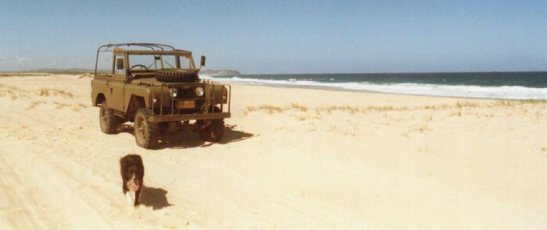 | Sunday afternoon in Jan 98. Pic shows north end called Redhead Beach. South end of this 7km "mini-bight" is called Blacksmiths Beach (not shown) ending at Swansea channel -inlet to Lake Macquarie (not shown). Belmont Golf Club & Lagoon directly behind camera (not shown). On the horizon are ships anchored off Newcastle Port. Yes, it's the Tasman Sea, aka South Pacific Ocean. (Inspired to look it up? - approx 32 S 151' E) |