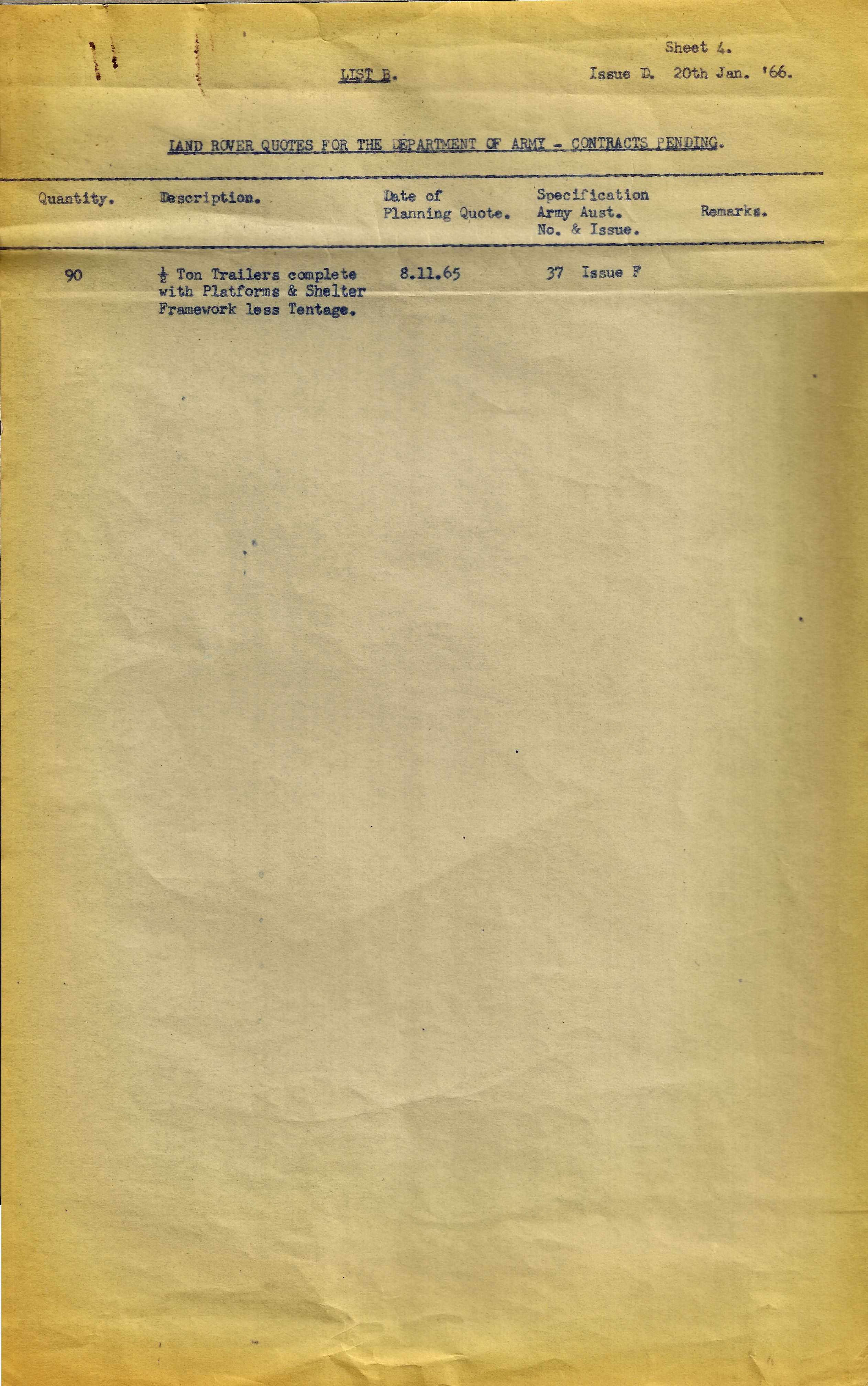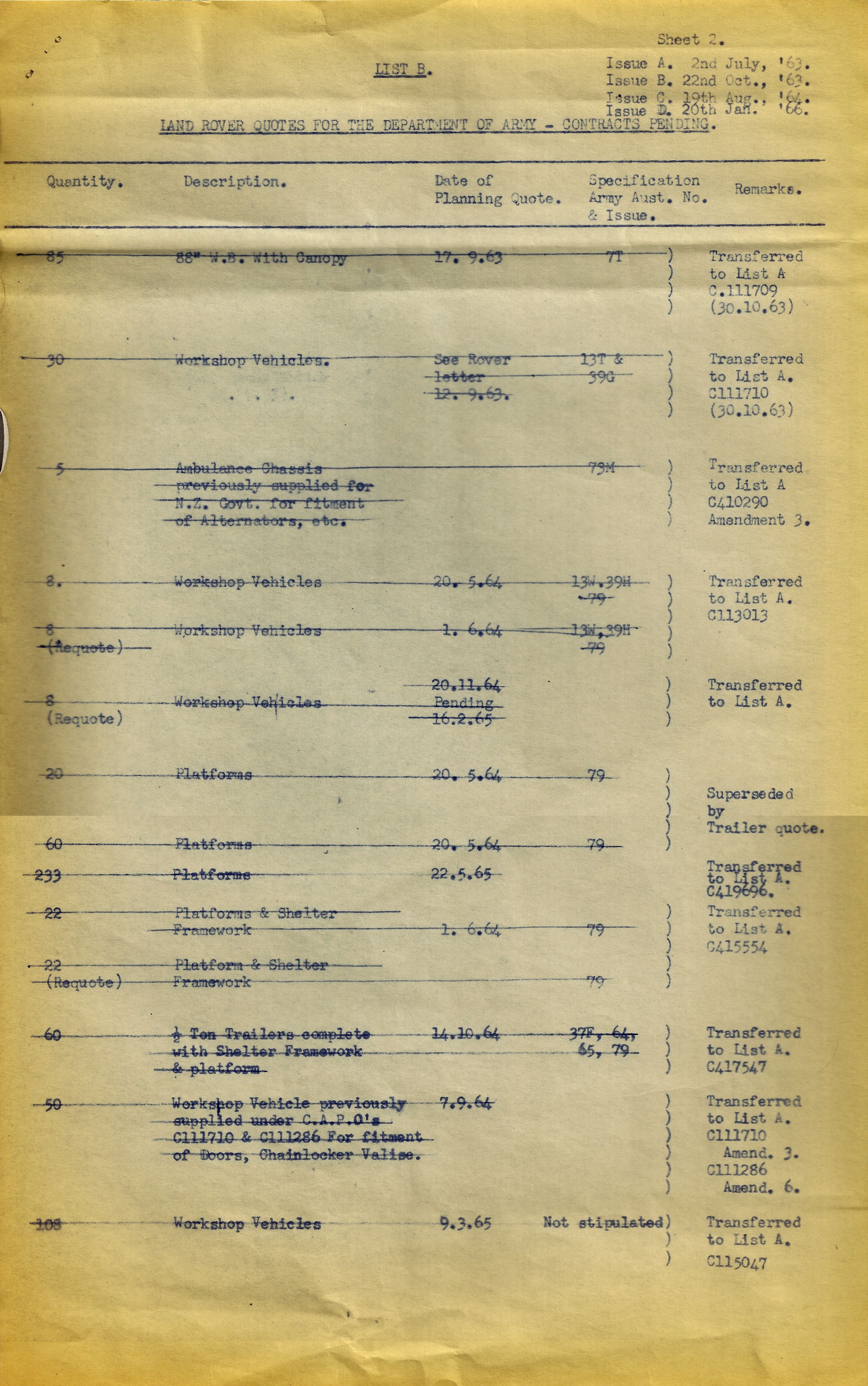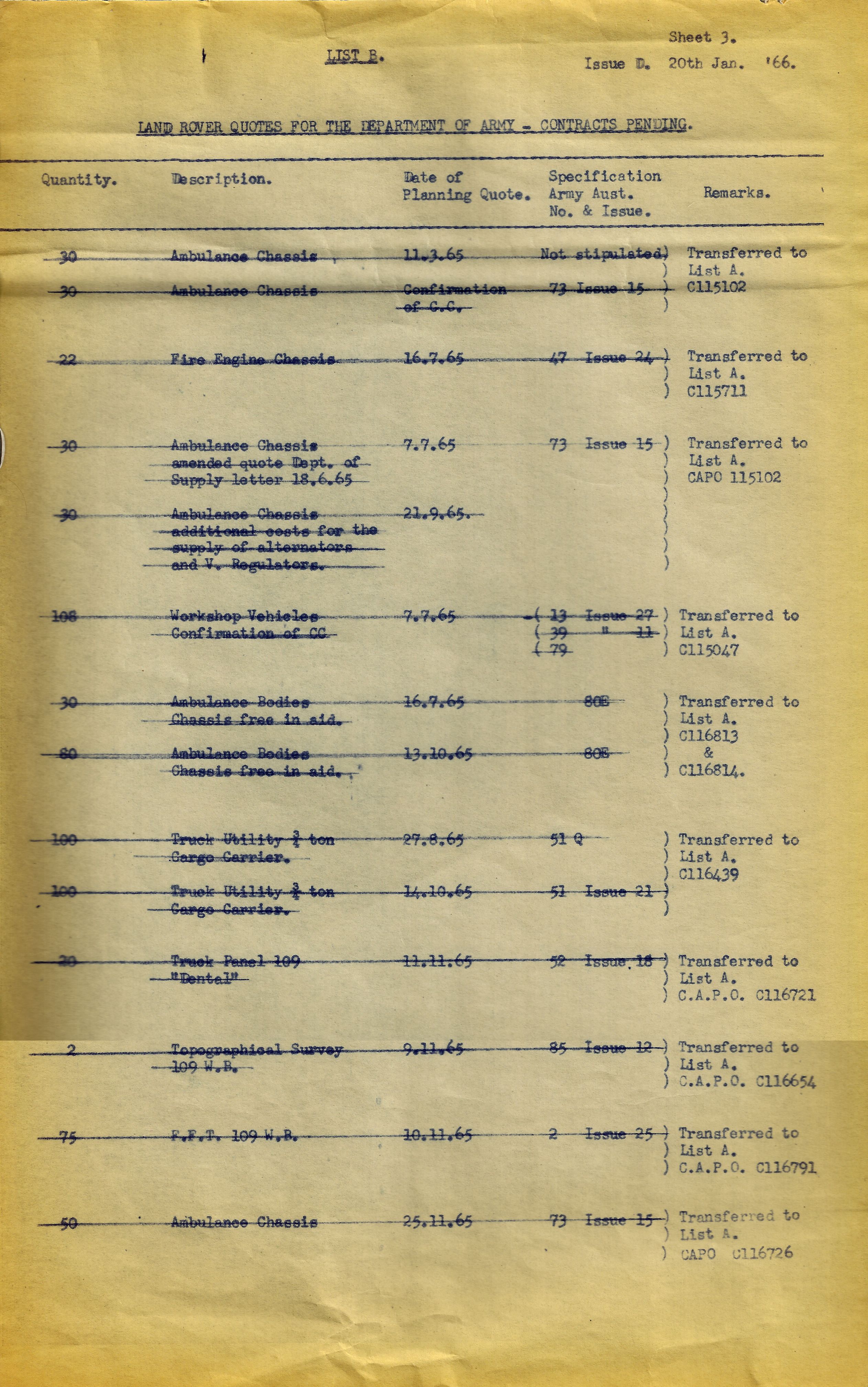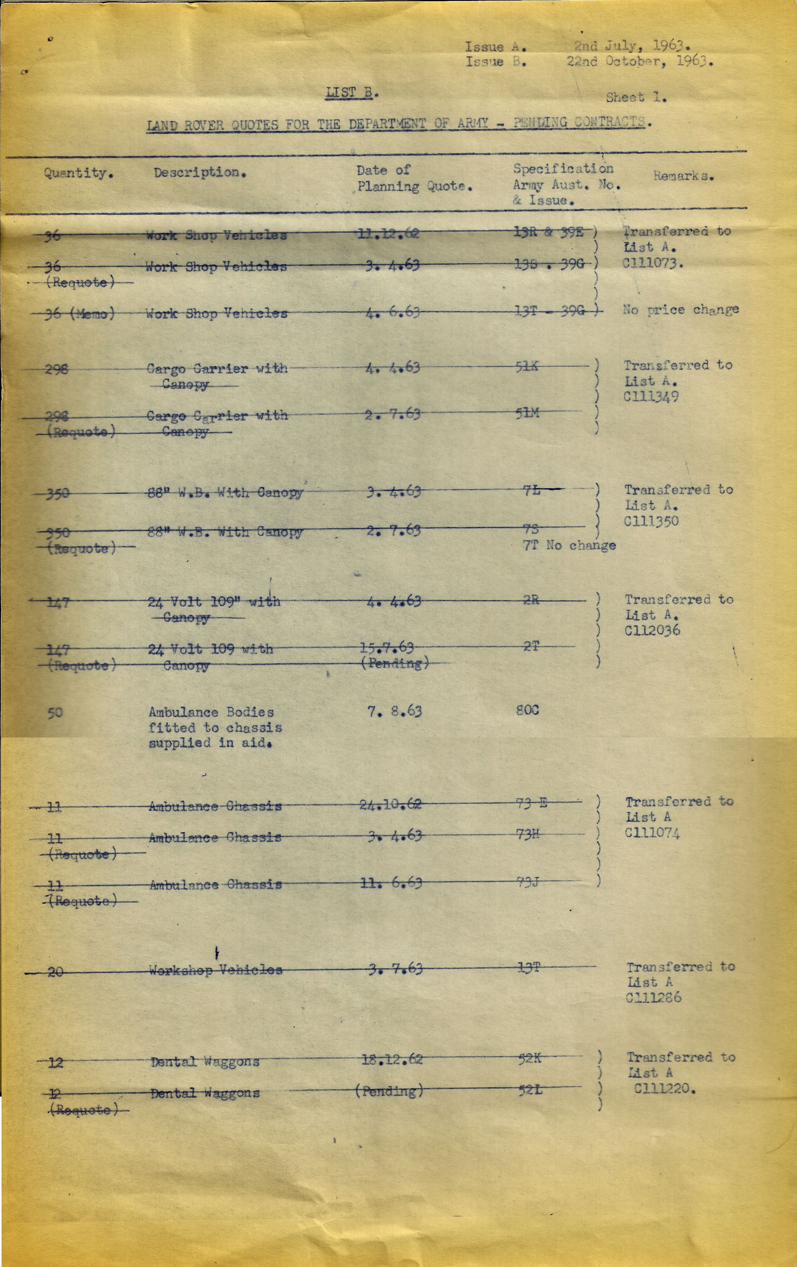 There was a quote issued 7.8.1963 for 50 Ambulance Bodies to be fitted to chassis supplied in Aid that was never taken up. Every other listed quote or requote was carried over to a contract.