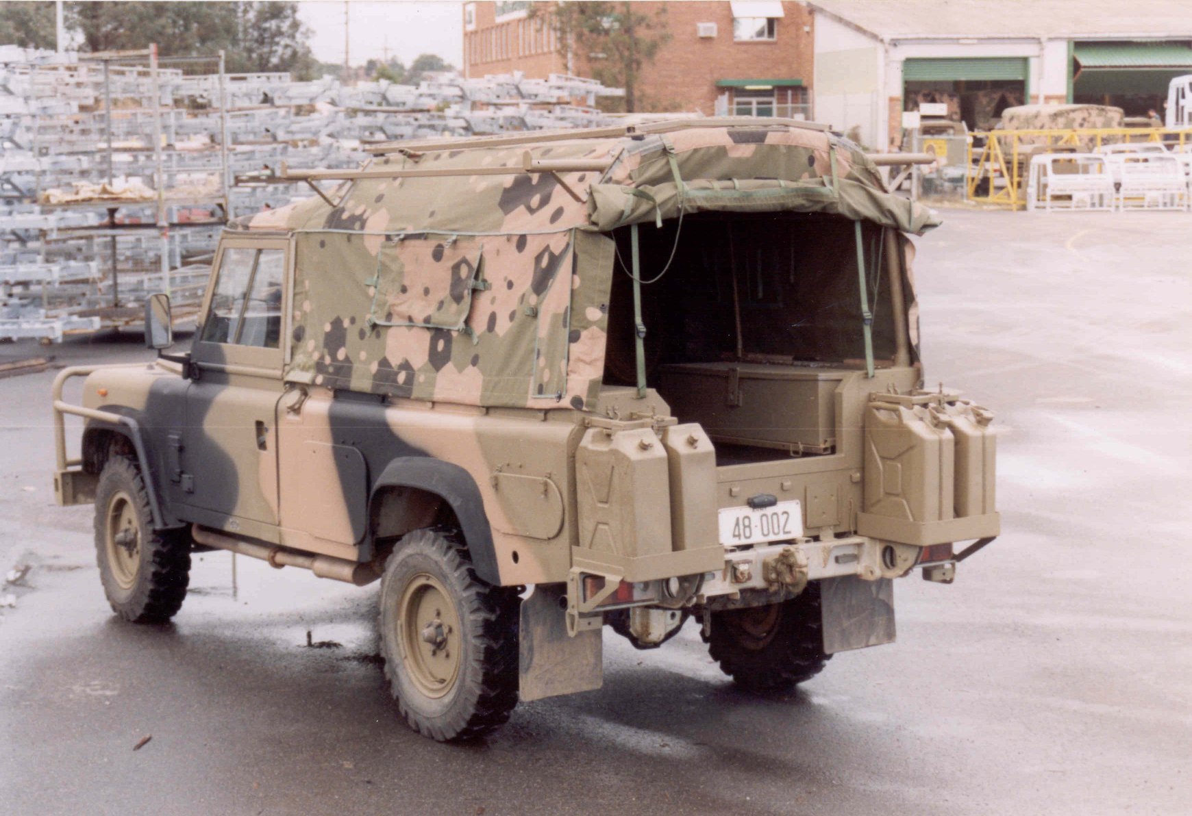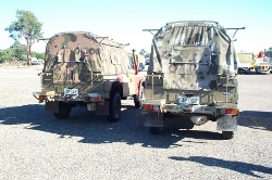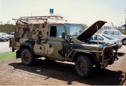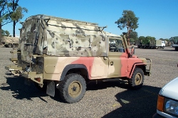 Nomenclature: Truck, Surveillance, Lightweight, Winch, MC2 Information: Officially the Truck, Surveillance, Lightweight, Winch, MC2, Land Rover, built under Project Perentie. This vehicle was built to traverse the most inhospitable parts of Northern Australia. A number of features such as increased vehicle protection, modified rollover protection system, heavy duty split rims, extra fuel storage and spare tyres were included to make those crewing these vehicles as self sufficient as possible. Designed to carry 3 people and their equipment, fuel and water for prolonged periods of time whilst on patrol. Initial Production vehicle 48-002 and 48-003 were the development vehicles for what became the RFSV, prototypes in essence. They were utilised as hacks and were left out in the sun for a number of years. In the end they were converted to the later RFSV standard and returned to regular service. Photos of these two vehicles can be found at the bottom of this page at various stages in their life. Both of these vehicles were also upgraded to the later RFSV specification, making them fairly unique vehicles to have existed in three distinct configurations. Interestingly during the development of the vehicle it was refered to as the Regional Force Surveillance Unit (RFSU) however RFSV became the more common term used whilst it was in the Army. Whilst there is only one RFSV model, the fleet undertook a number of upgrades and changes during it's lifetime, creating 2 vehicles reasonably different in appearance. Changes included an upgrade to the ROPS, storage and seating system. Able industries won this tender and did the conversion work to 150+ RFSV's as a part of Project Overlander Phase 2A. And as the number suggest, not all RFSV's were converted, and some of the first ones that appeared at the 2013 Australian Frontline Machinery Auctions were still in their original configuration as pictured below. 243 RFSV's were built under Project Perentie, and an additional 20 FFR With Winch vehicles were converted to RFSV standard. However 12 RFSV's were converted to SRV, then SRV(SF) and their ARN's changed to 203-xxx registrations. Features of these models include: RFSV