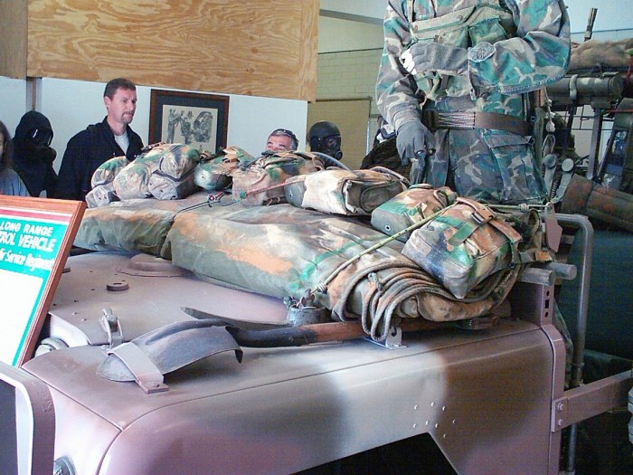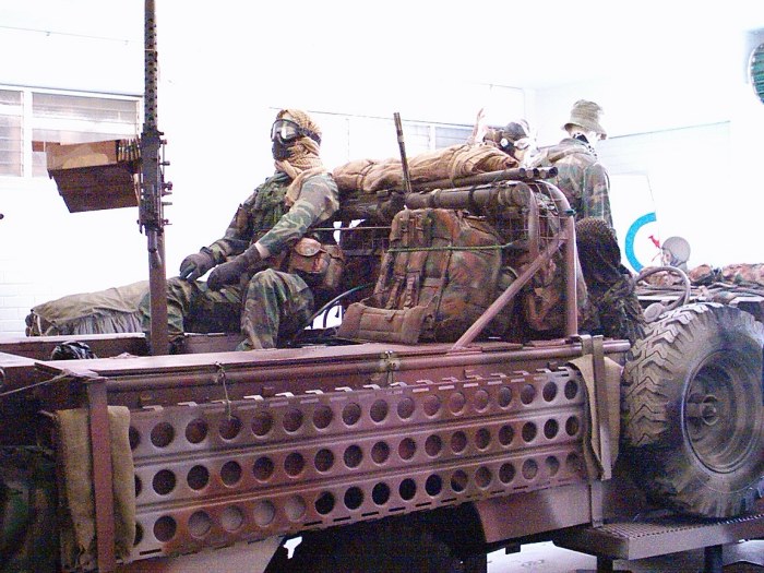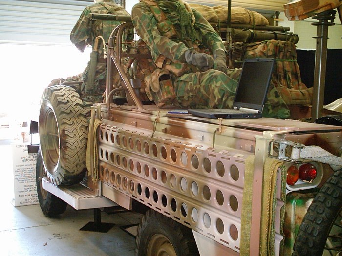West Australian REMLR members (Brian B., Phillip H., Matthew R.) enjoyed a visit to the SASR Historical Collection. Brian and Matthew took along their own Series 2A LRPV. In the carpark there were two of the first Perentie 6x6 LRPVs in u/s condition. The REMLR members carefully looked over the Land-Rover Series 2A LRPV on display, centre stage, in the SAS Regiment's own mini-museum - The SASR Historical Collection. Their collection of 'gear' is really something to see (as the photos demonstrate). For a restorer interested in an authentic LRPV rebuild and kit out... these photos are just what is needed. | |