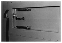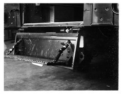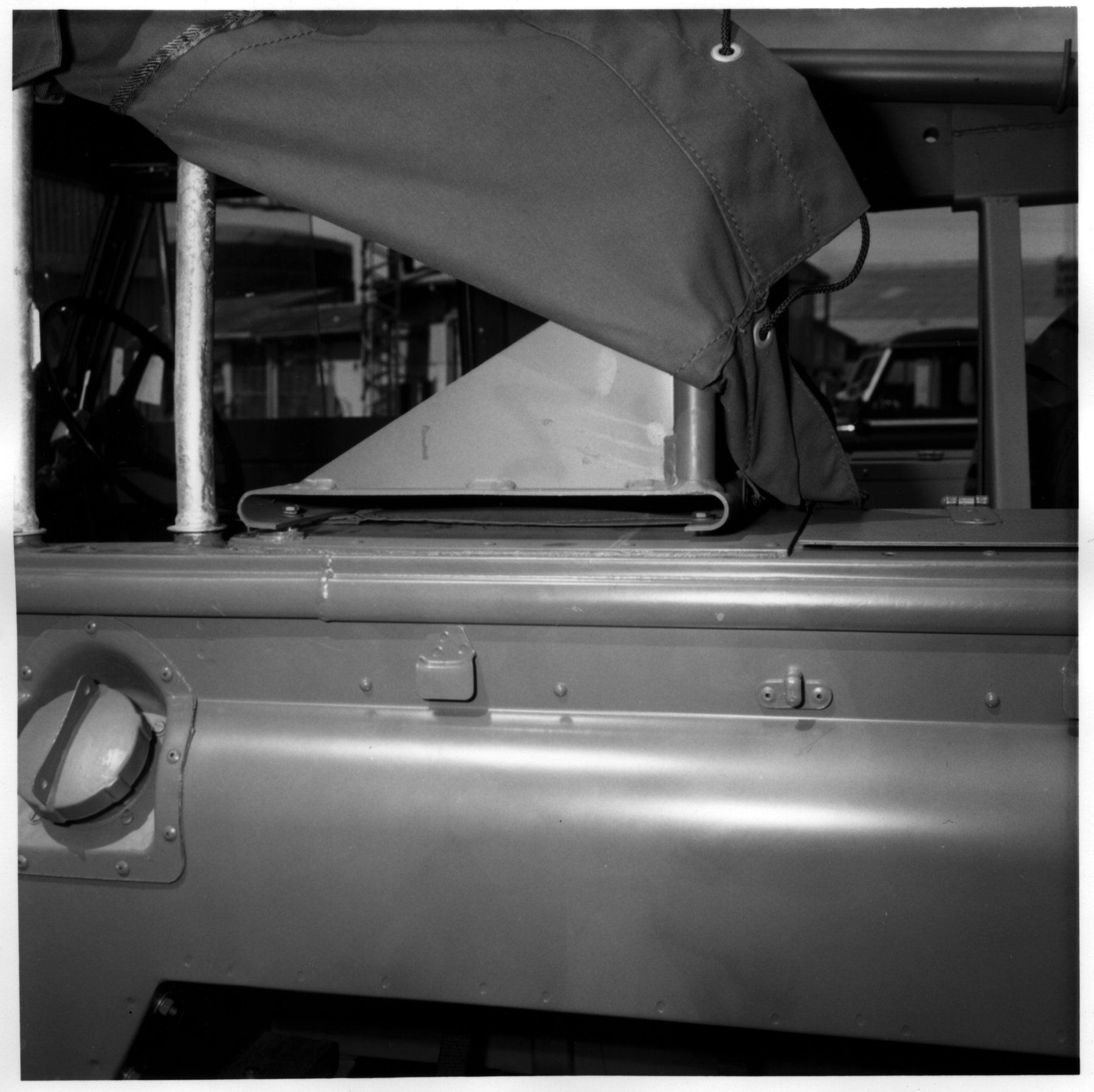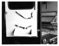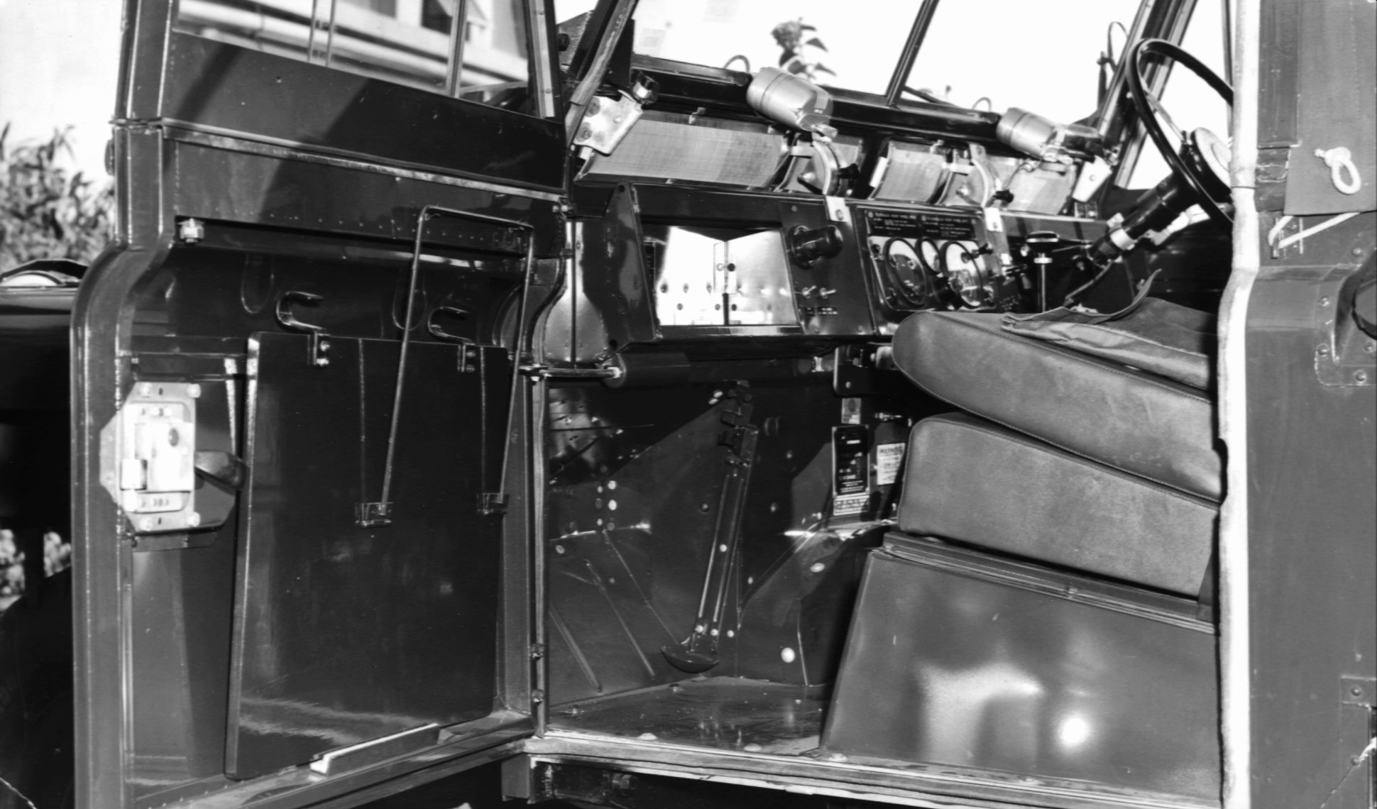 Another view of the radio mounting table in the back of the cab from outside the vehicle. The line that can be seen across the photo is the top of the door frame. |