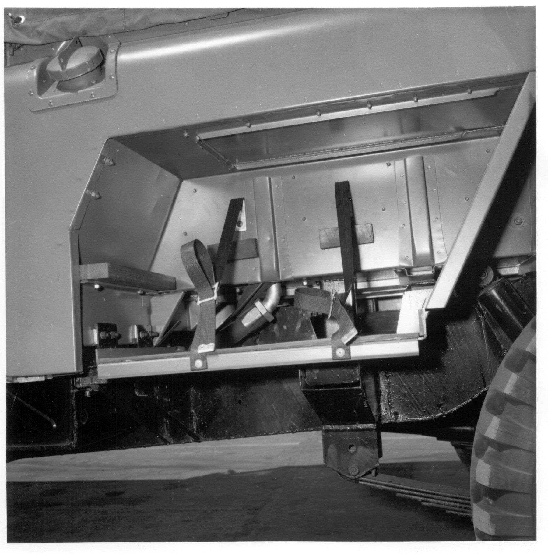 The straps for securing the jerry can in it's locker in the left hand side of the vehicle. |
