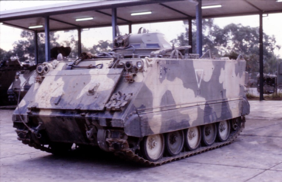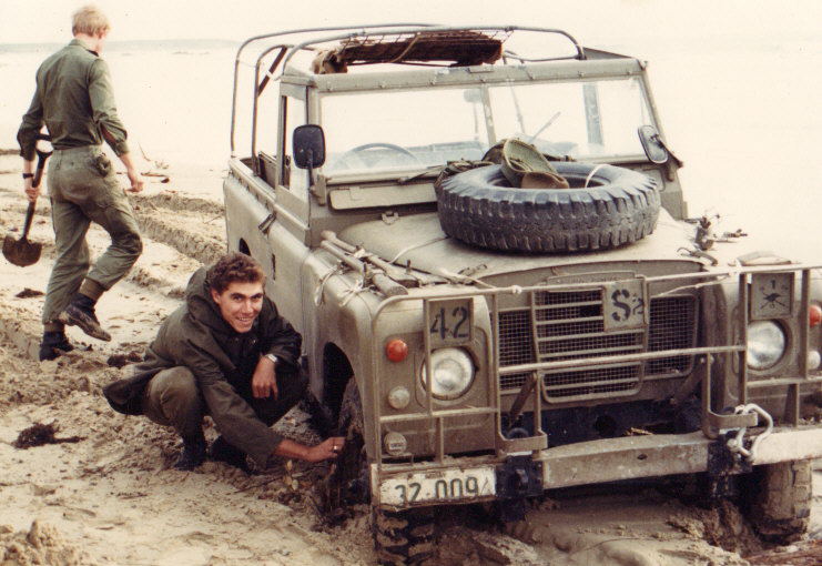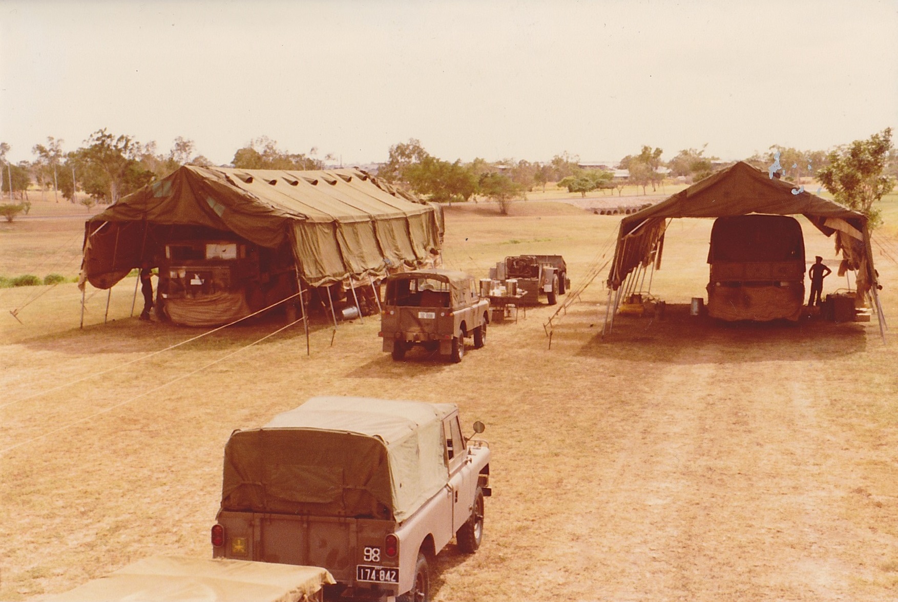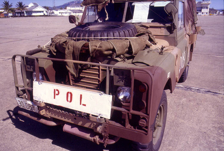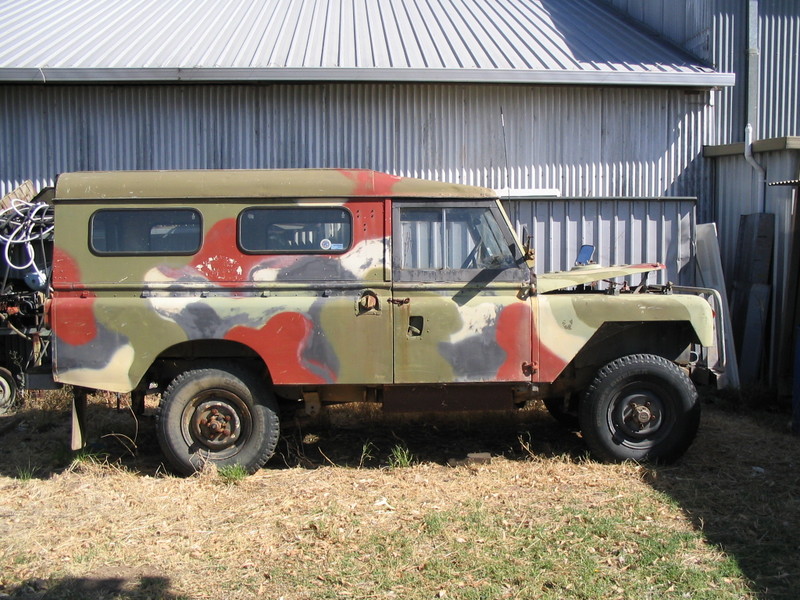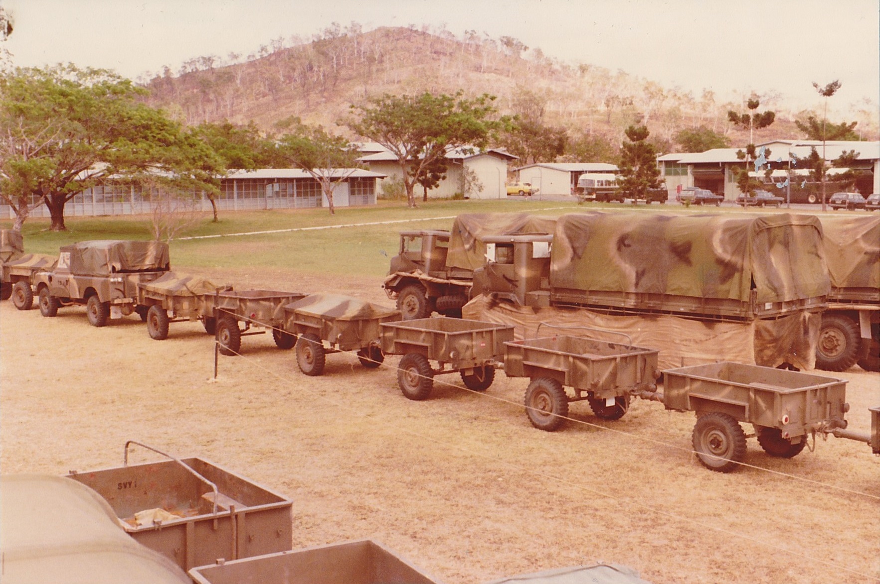 Brown and Tan  The reason for the change was to align the now 3rd Brigade with our area  of operations moreso, being the northern part of Australia.  Everyone  turned their noses up when the vehicles were painted these colours; however, as  the paint started to fade, it became very effective to the extent that its  worked well during Exercise K83 in the Pilbara.  This scheme remained here  in Townsville for some time until the new fleet of Landrovers arrived with the  current cam pattern.  Then everything was painted the traditional cam  scheme.  I was part of the preparation team for both occasions, masking and removing  items prior to painting.  This was a Task Force directed affair, so  everyone who could paint was seconded for this job.  It was a pain when  southern units joined in on some exercises as they wanted their equipment  painted.  The only trouble was, 102 FD WKSP had to return the vehicles  back to base colour prior to them departing Townsville.  I guess this is  what drove the purpose of standardising the fleet to a particular cam scheme.
