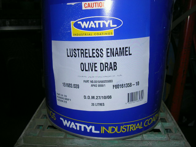 "Wattyl" stock code 214117.001 Paint, "Anzol Polyurathane 450-2022" Olive Drab, suit ADF