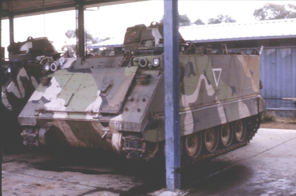 I have included  some photos of the first batch of cam painted vehicles we did mid 1981, prior  to exercise Kangaroo 81.  The 3rd Task Force (as it was known then)  Commander, Neville Smedhurst, directed 102 Field Workshops to paint everything  cam (including weapons).   The selected colours for vehicles overlaid on  the base olive drab were:
