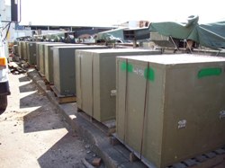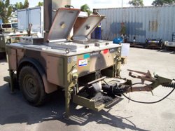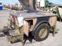 Haas-Sohn Mobile Field Kitchens These mobile kitchen trailers were built in 1988 and were intended to feed the masses, literally. With the capacity to make 250 three course meals, or 1000 one course meals in a three hour period. A formidible piece of catering equipment! Some units were sold incomplete, others will a 25kg box containing hot plates, tools and a modified 11x11 tent specifically to house the trailer. The manufacturers brochure can be downloaded from REMLR here. A hand written notation hidden in the brochure notes a price of $8600. These sold at auction for approximately $2200 so whether that value is what they were expected to fetch at auction, or what the Army purchased them for it is not know. The ARN details for the trailers can be found on this page. Trailer ARN's